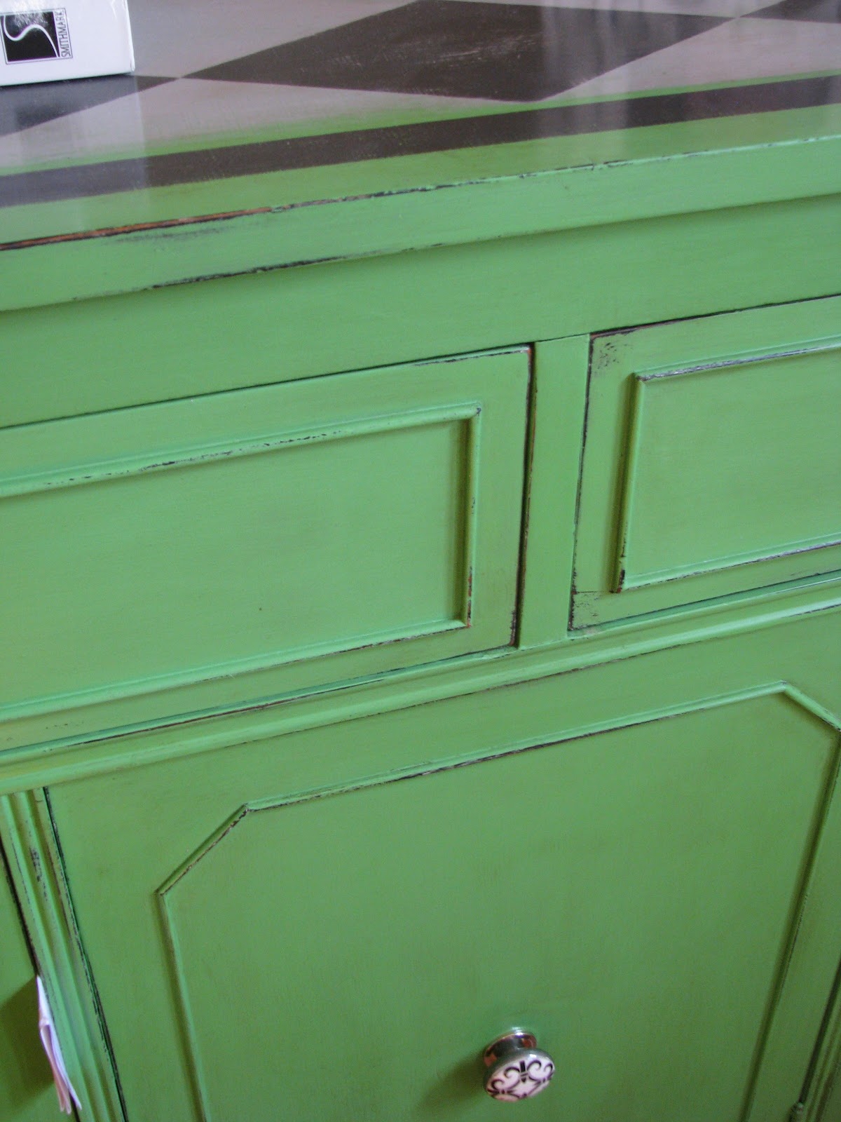 Annie Sloan's Antibes Green is a bright green. Too green for even my tastes so I toned it down using brown wax.